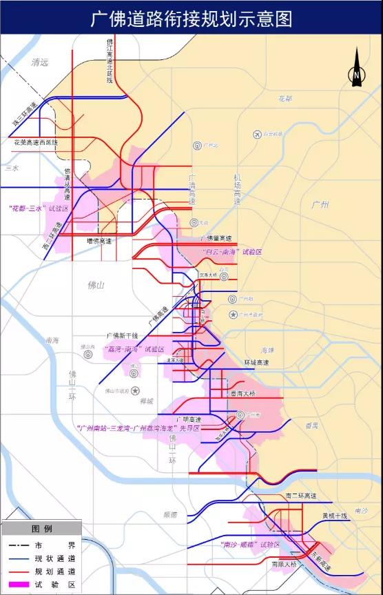 三是规划广中珠澳高铁和广深港高铁广州南站至广州站联络线,以及广佛江珠城际和地铁18号线南延至中山珠海等高快速轨道,实现广州与湾区东西两岸城市60分钟直达,支撑湾区科技创新轴发展,强化广佛极点带动作用。